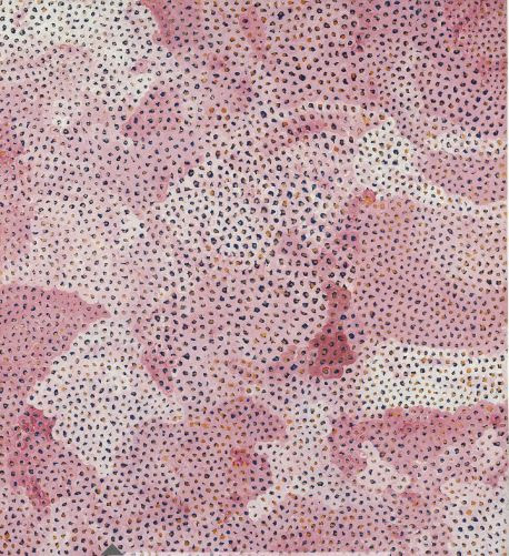 | In this 1967 photo released by Yayoi Kusama Studio Inc., Japanese artist Yayoi Kusama poses with a horse titled "Horse Play" in Woodstock, New York. (AP Photo/Yayoi Kusama Studio Inc.) Kusama's work from that time, Infinity Nets, which continue as a theme even today show more of a grid-like pattern with only a hint of the polka dot coming through. The water color like movement and texture to these canvases that I personally find tremendously beautiful. via